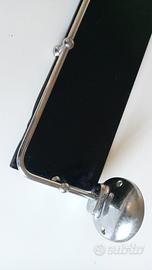 Mensola per bagno vintage, in vetro nero e profili in metallo cromato, profilo del vetro leggermente intaccato sul frontale destro (come da foto). Dimensioni: 50 x 12 cm. Dimensione orizzontale compresi elementi di fissaggio a parete: 57 cm.