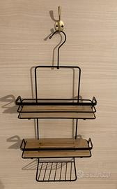 Doppia mensola con gancio per doccia, in legno e ferro, nuova.