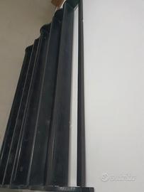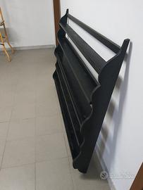 Mensola in legno. Alt 108 cm, largh 152 cm, profondità ripiani da 10 cm a 13 cm.