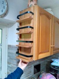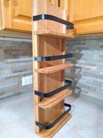 Portaspezie in legno massello essenza di Rovere 4 ripiani con fascia metal