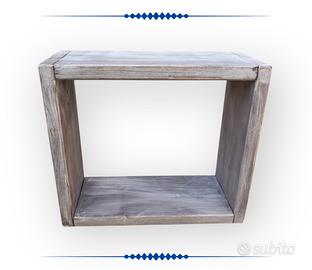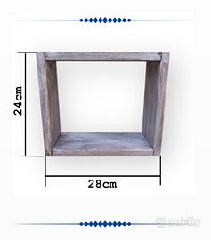 MENSOLA DA PARETE IN LEGNO REALIZZATA A MANO DESIGN CUBO STILE SHABBY CHIC.