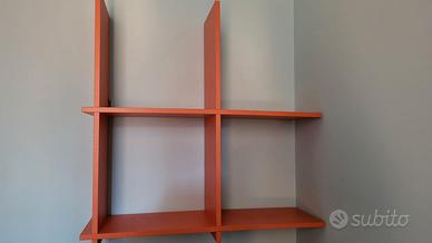 Mensola decorativa componibile legno arancione. 4moduli 70x21cm. Si può montare in vari modi.