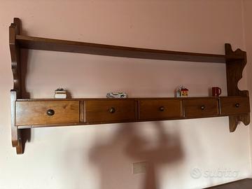 Mensola con cassetti in legno. Lunghezza: 169,5cm Altezza: 77cm Presenta alcune usure dal tempo ma in buone condizioni.