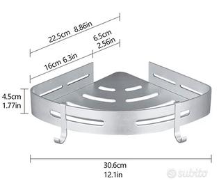 Vendo nuova mensola doccia angolare appena acquistata con kit di fissaggio (adesivo o con tasselli) in confezione originale. Dimensioni in ultima foto. Disponibile sia a spedizione che a vendita in presenza.