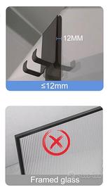 Mensola per Doccia da appendere. La struttura è in acciaio di colore nero, già progettata con i ganci nella parte superiore e gomma per proteggere il vetro della doccia. Mai utilizzata a causa delle porte scorrevoli della mia doccia, si consiglia vivamente una struttura priva di porte scorrevoli. Le misure sono: H 645 mm L 230 mm Profondità 100mm ❌ SI CONSIGLIA DI VISIONARE BENE TUTTE LE IMMAGINI E DI VERIFICARE LE MISURE ❌