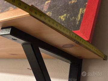 Lunghezza 104cm; é stata tagliata su un lato (come da foto) ma il taglio è poco evidente perché l’interno é in legno. Volendo le staffe si possono spostare per ricentrarle.