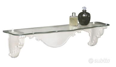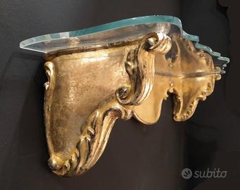 Elegante mensola in legno intagliato, venduta senza piano vetro, disponibile