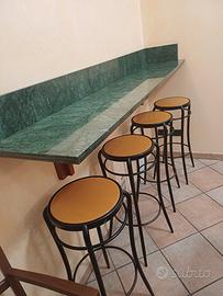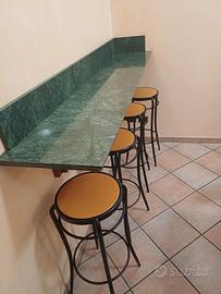 vendo mensola in marmo +4 sgabelli lunghezza circa 2 metri in ottime condizioni Sgabelli in metallo nero e seduta in legno.
