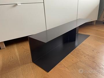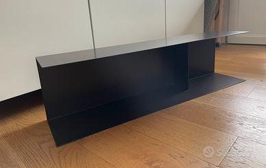 Mensola in metallo nero da appendere alla parete. Divisa in due spazi assimmetrici. Misure : Lunghezza 90 cm Altezza 23 cm Larghezza 19 cm Ottimo stato, pari al nuovo. Consegna a mano.
