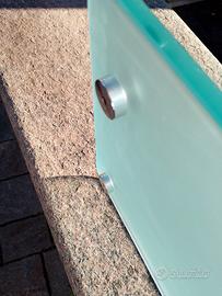 Mensola vetro color acqua marina Lunghezza: 160 cm, larghezza 32 cm Completo di supporti metallici per fissaggio a mensola o staffa metallica