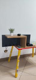 mensola per ingresso svuota tasche con porta chiavi, colore del retro in pietra lavica e ripiano colore rovere. montaggio a parete senza vedere viti di fissaggio..... misure L45xH18xP17