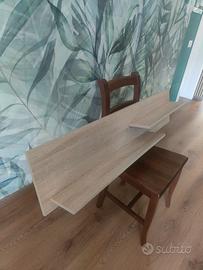 Mensola in legno nuova con due ripiani. La lunghezza totale è di 133cm. I ripiani hanno profondità 15cm. Solo ritiro a mano