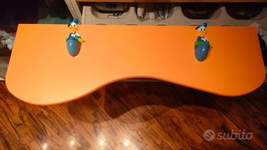 Mensola color zucca, 76 cm, stondata, fornita con ferramenta per l'attacco al muro a forma di Paperino.