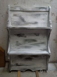 mensole, piattaia, bianca decapata in grigio. Dimensioni: altezza 100 cm, larghezza 60 cm, profonditá 13 cm.