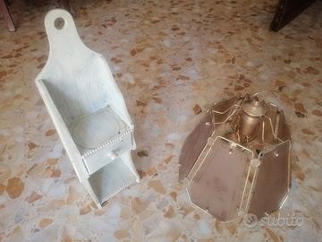 Vendo mensola - piattaia da cucina color noce. Regalo lampadario e oggetto come in foto. Ritiro a carico dell'acquirente zona Ostia.