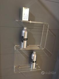 Scaffaletto Portaoggetti bagno Design in plexiglass spessore 8 mm a 3 piani con asole compresi supporti cromati 52x30x10 circa contattare per eventuale spedizione