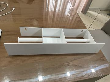 Vendo mensola di design in metallo porta rotolo carta igienica, sapone e salvietta per bidet. Acquistata per metterla in bagno ma mai utilizzata perché non ho la possibilità di fare fori su quella parete. Modello molto simile ad una mensola di un noto marchio di oggettistica di design. Colore bianco, pagata 100€ su etsy vendo a 70€ trattabili Specifiche: • Materiale: acciaio verniciato a polvere • Colore: Bianco opaco (o Nero / Personalizzato su richiesta) • Larghezza: 50 cm / 19,7 pollici • Profondità: 13 cm / 5,1 pollici • Altezza: 9 cm / 3,5 pollici • Montaggio: sistema di montaggio a parete nascosto (viti e tasselli inclusi)