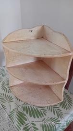 mensola tre piani a angolo ,rustica fatta a mano,dipinta ,circo 50 cm per 40 cm legno massello