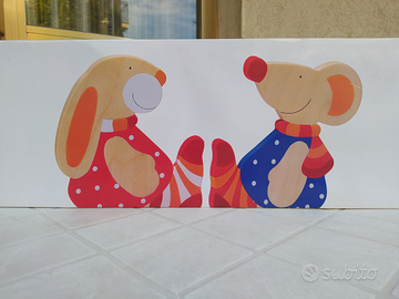 Molto colorata, munita di due ferma libri e sormontata da due simpatici topolini.