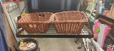 Mesola in ferro da appendere sospesa più due ceste in vimini.misure mensola 80*40.Ceste 35*35*13.