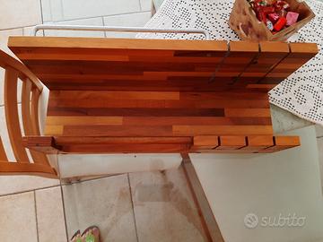 mensola sottopensile in legno doghettato, porta scottex, coltelli, barattoli. va montata al muro incastrata con una barra portamestoli.