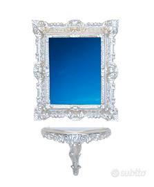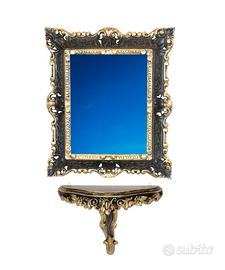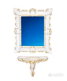Set composto da uno specchio rettangolare + consolle finto vintage in stile barocco Luigi XVI, interamente realizzato in resina sintetica con plastica di riciclo.