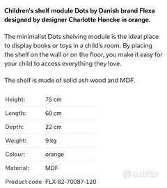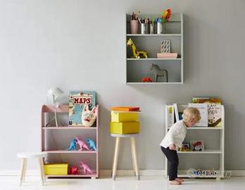 Vendo questa bella mensola di design danese in ottime condizioni, segnalo solo un piccolo sbecco in alto che si vede poco. Si puo appendere o usare a pavimento. Perfetta per camerette, ma non solo. La possiedo anche rosa, vedi altro annuncio. Lo vemdo insoeme ql suo cassettone coordinato con ruote comodissimomper riporre i giochi. Valore nuovo 95+140. Ritiro a cura del compratore, non spedisco.