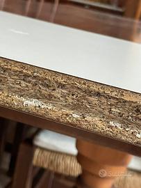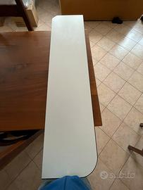 Mensola in legno laminato bianco con bordo nero, gia predisposta per il montaggio a sbalzo senza mensole