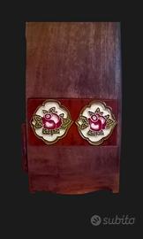 Vendo mensola verticale con decoro in ceramica. Legno massello, 3 scomparti e un piccolo cassetto. Utilizzabile come mensola da tavolo o da pavimento.