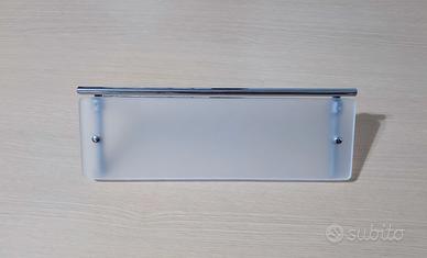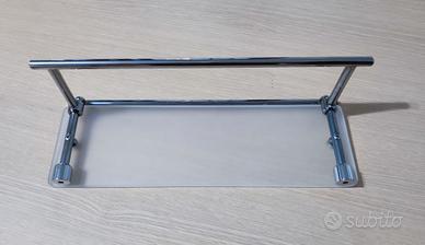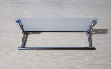 Mensola in vetro temperato per bagno con supporti in acciaio inox più barra porta salviette. Misure L. 35cm P. 11cm S. 8mm