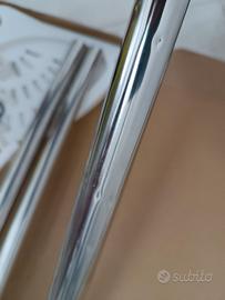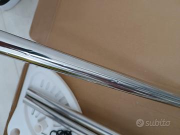 Design Pratico: Asta cromata lucida e ripiani bianchi (si notano lievi imperfezioni sull'asta nelle foto, ma la funzionalità è intatta).