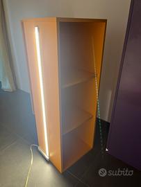 4 mensole/cubi: 2 arancio H32-L90-P28 - 1 con led 1 lilla H32-L120-P28 - con led 1 prugna H32-L120-P28