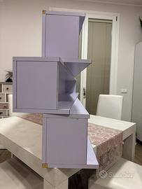 Tre mensole lilla “chiuse” (hanno il piano superiore, quello inferiore, il fondo e i laterali). Sono lilla, di qualità. Erano in una cameratta da bimba.
