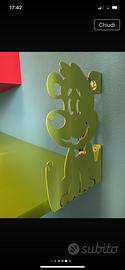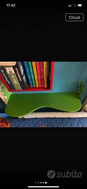 Bellissime mensole per cameretta, fissaggio a muro con fischer. Quella rossa misura in lunghezza 55 cm, profondità massima 26 cm, profondità minima 22 cm. Quella verde misura 76 cm di lunghezza, profondità max 27 cm, profondità min. 24 cm.