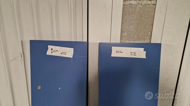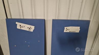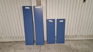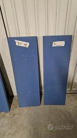 vendo mensole laccate di colore blu con angolari. due mensole lunghe misura 142.3cm x 30.5cm e due mensole corte 95cm x 30.5cm