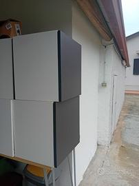 Vendo 6 cubi contenitori apertura a bottone misure 45x45 profondi 48. Colore bianco e grigio topo. come nuovi. 25 € l'uno.