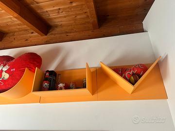 3 mensole arancioni forme diverse rettangolare triangolare e tondeggiante