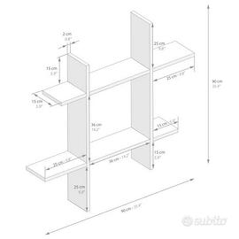Vendo coppia di mensole "Angelica" di Mobili Fiver. Le mensole sono nuove e ancora sigillate nell'imballo originale. Si vendono perche' non possono essere installate sulla parete a cui erano destinate. Le dimensioni sono 90 x 15 x 90 cm Colore bianco frassino Prodotto Made in Italy Grazie alla loro forma unica, sono ideali per arredare una parete con originalita' e creativita'.