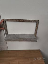 Due mensole da parete in legno grigio invecchiato, mensole rustiche galleggianti, misure L. 29 x A. 17,6 x P. 12 e l'altra L. 37 x A. 26 x P. 12.