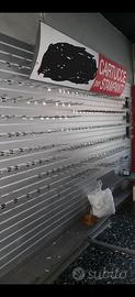 Vendo per pannelli dogati mensole di varie misure, Ganci, pannelli per immagini e accessori portaprezzi. Sono usati ma in buono stato. Le mensole sono in metallo verniciato opaco.