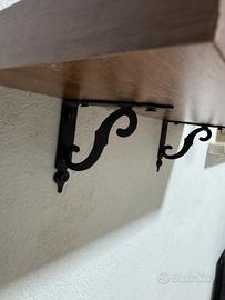 Numero 6 Mensole tamburate finitura noce con relative reggi mensole in ferro battuto