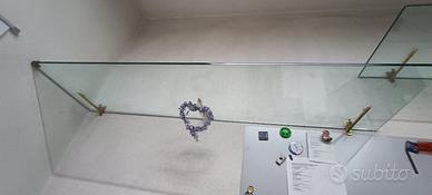 Si vendono 3 mensole in cristallo con lunghezza di 150cm, larghezza 40cm e spessore del vetro 1cm. 2 mensole hanno staffe color oro ed una cromata. 50€ cadauna