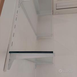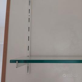 Vendo questa composizione di tre mensole in vetro con binari da poter utilizzare varie altezze, misure 66 cm larghezza vetro, binari 1 mt . perfetto come da foto.