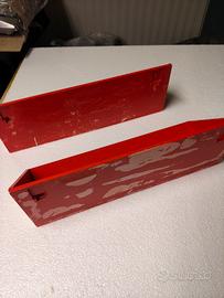 Vendo due mensole della Kartell degli anni 70 di colore rosso. Dim. 30 cm. La parte posteriore è leggermente scolorita perché sono state incollate alla parete. Le mensole hanno in dotazione i due ganci specifici forniti da Kartell. Leggeri imperfezioni dovute a tempo. ( Foto 5 )