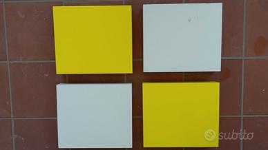 2 mensole sono bianche e 2 gialle. Una delle bianche presenta dei segni di usura, come da foto.