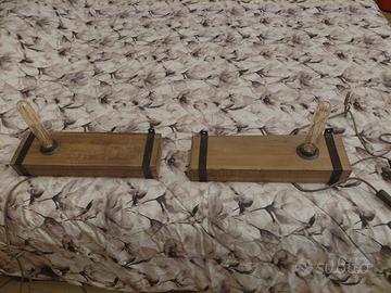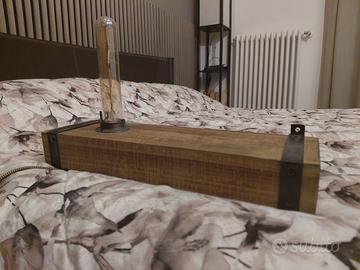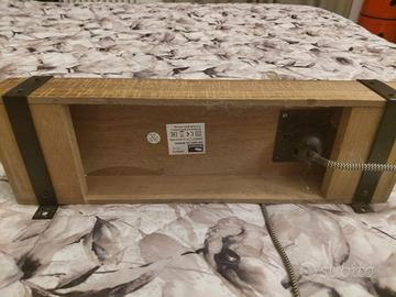 Coppia di mensola con luce integrata, in legno con sostegni in metallo nero per fissaggio a parete. Utilizzabili come piccoli comodini, c'e un destro e sinistro in modo che siano simmetrici ai lati del letto.