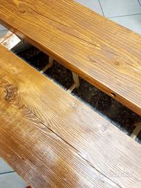 Le mensole sono state levigate e spazzolate piu volte mantenendo intatti i segni di usura dell'asse recuperata; il piano può mostrare qualche crepa, foro.