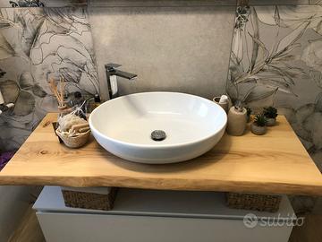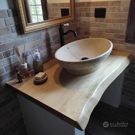 Creazione di mensole e di top bagno in legno massello su misura e su ordinazione, noce, frassino, olmo, faggio, cedro del libano, rovere e verniciatura con poliuretanica bicomponente che rende il prodotto lavabile e maggiormente inalterabile nel tempo. Create nella mia piccola attività.