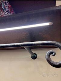 Mensole in legno artigianali con led inserito per illuminare l’appenderia , bastone in ferro battuto e base sempre in legno , per un totale di 4 mensole alte , due bastoni appendiabiti in ferro battuto e due basi in legno da poggiare per terra e da potere utilizzare sia per una splendida cabina armadio che per un negozio di abbigliamento. Misure della parte più corta: Base a terra, lunga 2 metri e 60 centimetri per 42cm di larghezza, mensole in alto lunghe 2 metri e 88 centimetri circa per 42cm di larghezza. Misure mensole più lunghe: Base a terra lunga 2 metri e 90 cm circa per 42cm di larghezza mentre le mensole in alto sono lunghe 3 metri e 20 cm per 42cm di larghezza No spedizioni.
