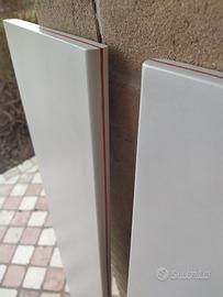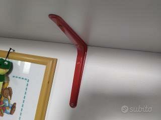 Causa trasloco Vendo 2 Mensole in legno laccate bianche con profilo rosso e con zanche di montaggio di colore rosso. Utili per portare libri, giochi, oggetti di ogni sorta. Adatte all'arredo di camera, bagno, zona giorno, entrata, corridoio. Molto solide e robuste. tenute bene come nuove